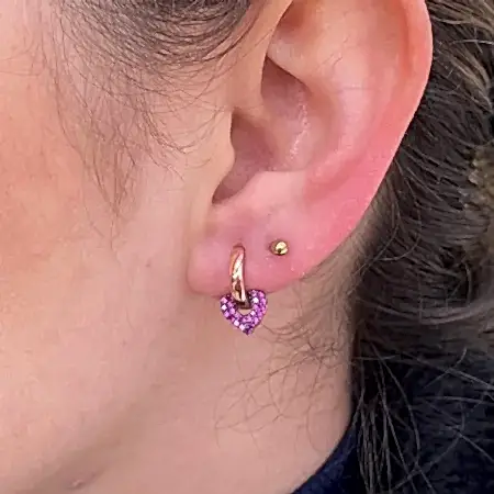 • 925 Ayar Mor Taşlı Kalp Gümüş Küpe