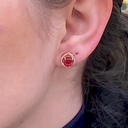 • 925 Ayar Oval Kırmızı Taşlı Gümüş Küpe